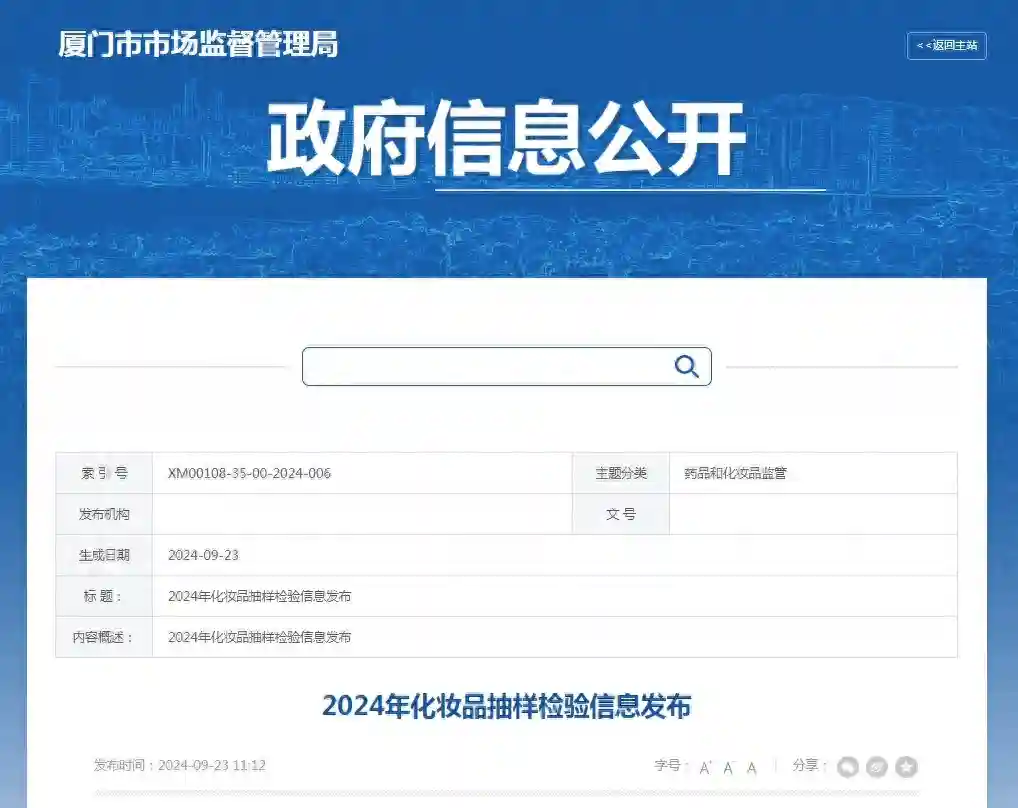 为加强化妆品质量监管,切实保障公众健康安全,厦门市市场监督管理局在全市范围内组织开展化妆品抽样检验,根据《化妆品监督管理条例》和年度化妆品抽检计划,截至2024年8月31日厦门市市场监督管理局共抽检71批次,其中合格71批次,不合格0批次,根据《食品药品安全监管信息公开管理办法》现予以公布。