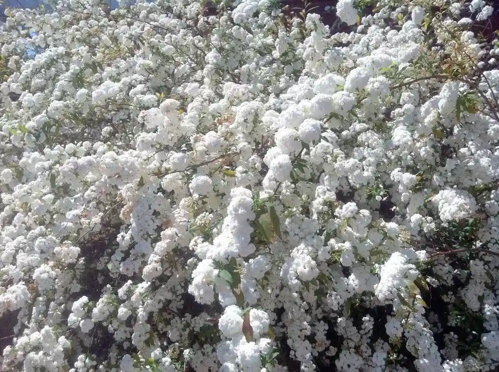 喷雪花一般就在每年的3~4月份开花,花期是比较长的。开花的时候,花朵极其密集,花量繁多,它的花朵的花朵就紧紧的贴在枝条上,看起来就像很多雪花沾染在枝条上,它的叶子看起来很是翠嫩。