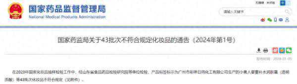 43批次不符合规定化妆品的通告