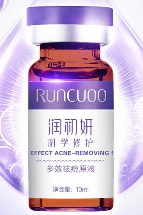15.标称广州昕润生物科技有限公司委托广州市婷采化妆品有限公司生产的RUNCUOO润初妍多效祛痘原液,不合格项目:水杨酸;